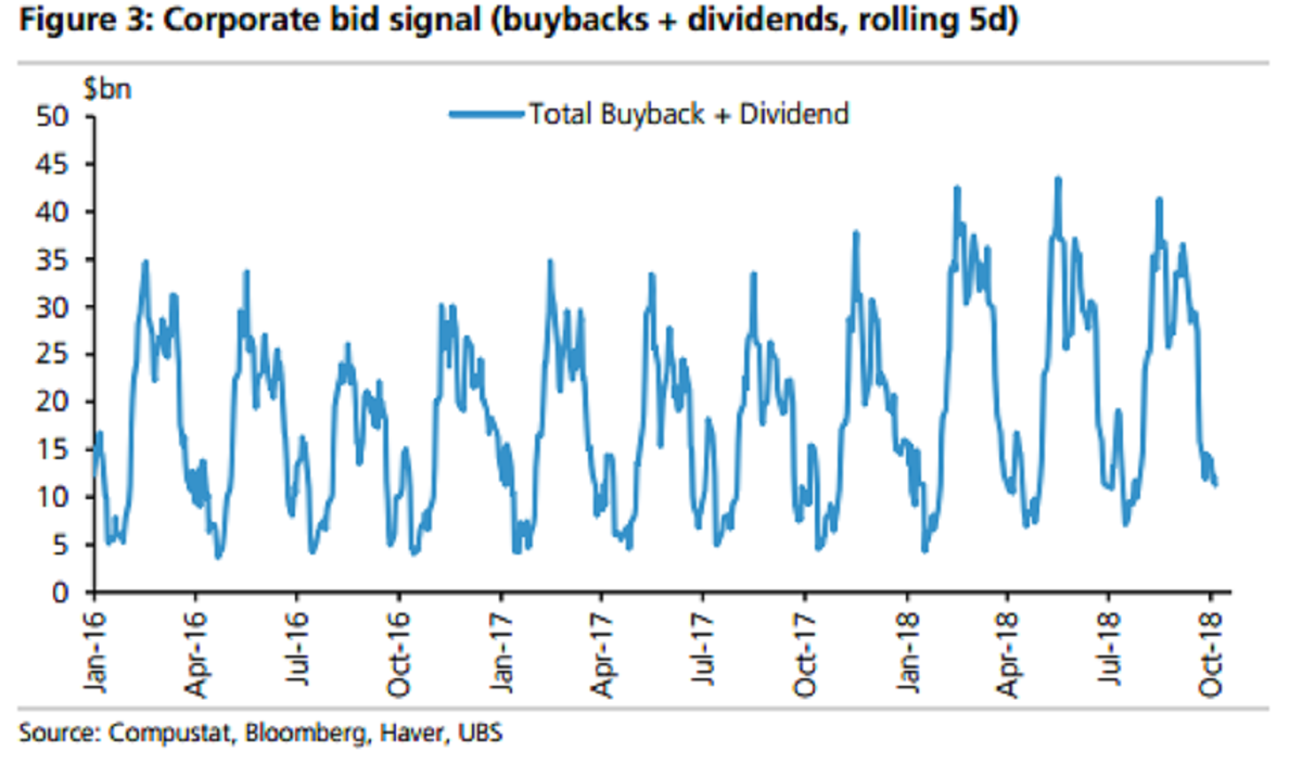 A medida que los fondos de cobertura y los inversores de la ETF aumentaban las ventas, las compras corporativas se reducían debido a un apagón en las recompras discrecionales antes del inicio de la temporada de ganancias. La demanda de las empresas cayó a $ 14 mil millones la semana pasada, por debajo del máximo de este año de alrededor de $ 40 mil millones, según datos compilados por UBS. El fondo de liquidez podría no mejorar hasta finales de este mes, dijo Parker.