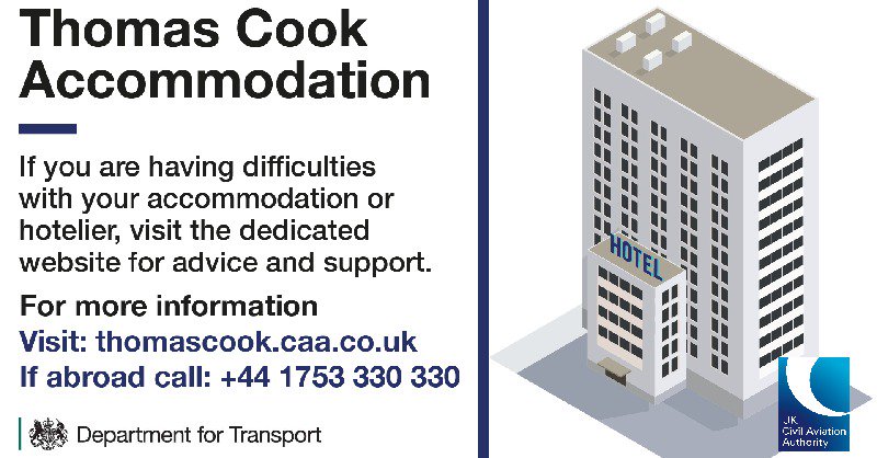 If you are a Thomas Cook customer and having difficulty with your accommodation or hotelier, visit the dedicated website here: thomascook.caa.co.uk