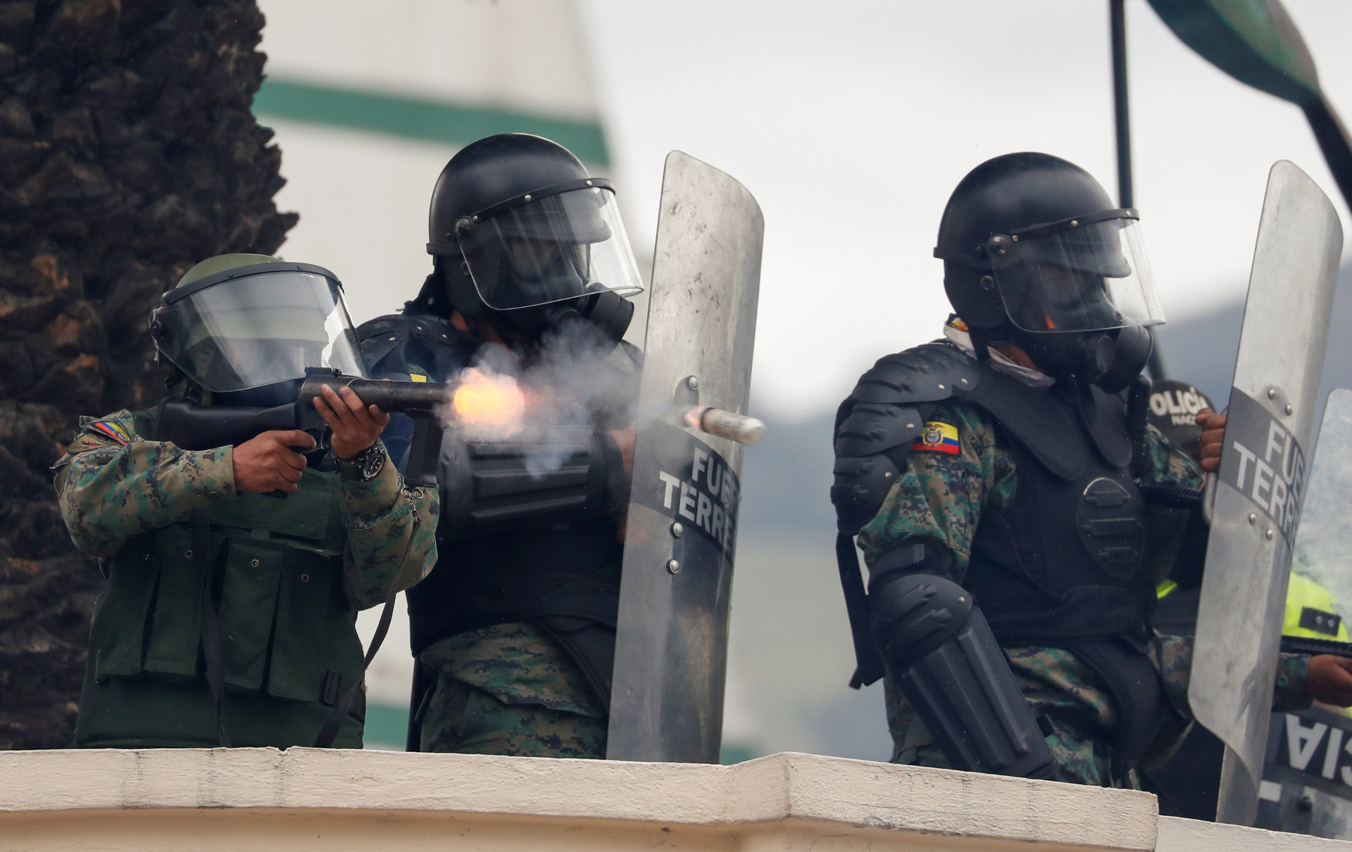 Un fotógrafo registra el accionar policial durante las protestas del 4 de octubre del 2019 en Quito, Ecuador.