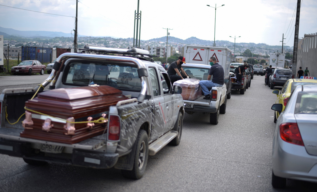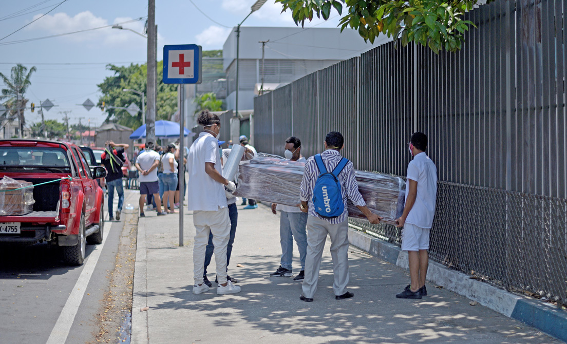 Recientemente, ante este incremento de fallecidos, tanto en sus domicilios, como en los hospitales, la municipalidad de Guayaquil prometió entregar 4.000 ataúdes de cartón para poder sepultar los cadáveres acumulados.