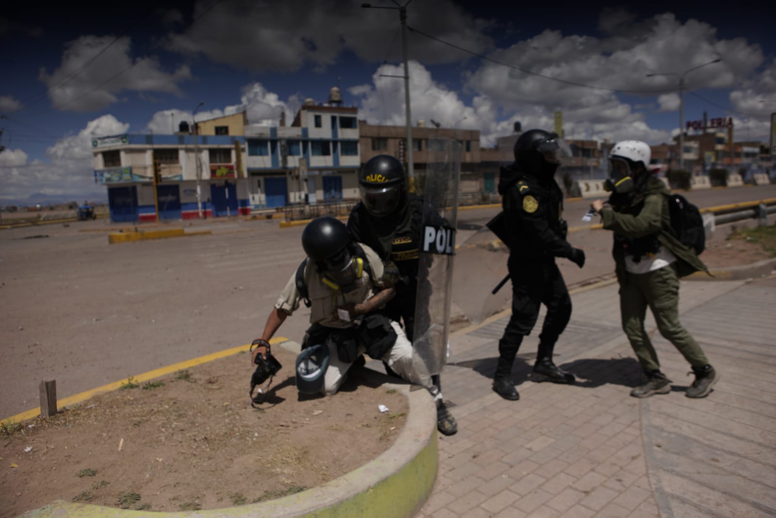 La Asociación Nacional de Periodistas del Perú (ANP) denunció que el fotoperidodista de la agencia EFE, Aldair Mejía, fue atacado por los policías y fue impactado por un proyectil en la pierna cuando cubría las protestas en Juliaca, en la región Puno.