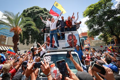 La oposición ha apalancado la convocatoria con los venezolanos en exterior. Están planificados encuentros en más de 350 ciudades que han sido lugar de destino de los más de 7,5 millones de venezolanos que se han visto obligados a abandonar su país en los últimos años por la profunda crisis económica y humanitaria por la que ha pasado su país. La mayoría de ellos son opositores. Para lograr organizar las marchas, esta semana la líder María Corina Machado ha tenido una intensa jornada de directos de Instagram y entrevistas con influencers venezolanos en todo el mundo para usar sus plataformas digitales para amplificar su llamado en el exterior, donde busca mover más apoyos que presionen para que Maduro acepte iniciar una negociación para una transición pacífica. En todos los estados de Venezuela también se ha llamado a la gente a concentrarse. La movilización que logre también será una medida del impacto que ha tenido la política de persecución y represión desplegada en las últimas semanas, en las que se han denunciado varios episodios en los que la policía revisa los teléfonos de la gente en la calle en busca de videos de protestas o contenido que puedan consideran que es contrario al Gobierno. Muchas ciudades del país, incluida la capital, no se han recuperado todavía del sopor de la jornada electoral y sus días de furia siguientes. Hay una especie de toque de queda no decretado que lleva a los negocios a cerrar más temprano y a la gente a evitar estar en la calle. Los ciudadanos dicen tener miedo. Se espera, sin embargo, que Machado esté en la concentración como lo estuvo en la última que se hizo en la avenida principal de Las Mercedes. Desde hace dos semanas, informó que se había resguardado, al igual que Edmundo González Urrutia, que no ha hecho apariciones públicas junto con sus votantes desde el 30 de julio.