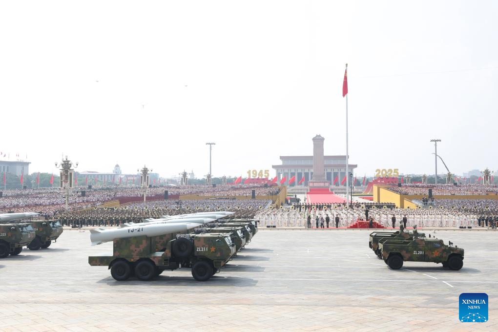 BEIJING, 3 sep (Xinhua) -- Los misiles hipersónicos de China con capacidades de combate en todo clima, YingJi-21, DongFeng-17 y DongFeng-26D pasaron por la Plaza Tian'anmen en el desfile militar del Día de la Victoria, que se celebró hoy miércoles.