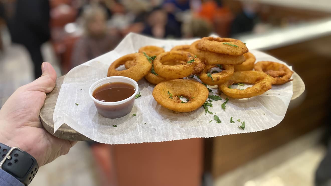 Aros de cebolla subcontratados: en el Carnegie Diner & Cafe de la ciudad de Nueva York, la popular guarnición ahora se prepara a partir de un producto congelado.